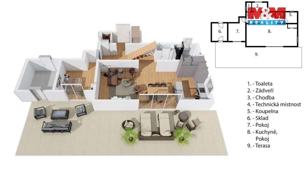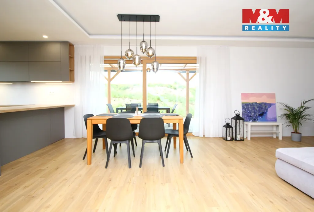 Prodej novostavby zděného rodinného domu na pozemku o rozloze 955 m² v klidné okrajové části Rychnova nad Kněžnou s výhledem na Orlické hory. Dům byl zkolaudován v roce 2023 a nabízí nadstandardní bydlení. V přízemí je kuchyňský kout propojený s prostorným obývacím pokojem se vstupem na krytou terasu, pokoj, koupelna s vanou, samostatné WC, komora a sklad s venkovním vchodem. V patře pokoj 25 m², který lze rozdělit na dvě místnosti, čímž vznikne dispozice 5+kk, dále ložnice a koupelna se sprchovým koutem a toaletou. Dům má podlahové vytápění, přípravu na centrální vysavač a rozvody pro ovládání venkovních elektrických žaluzií. Parkování je kryté až pro 3 vozy. V interiéru zbývá dokončit jen drobnosti. Pozemek je nutno dobudovat dle vlastních představ včetně oplocení. Vybavení domu lze po dohodě částečně ponechat. Více informací u makléře.