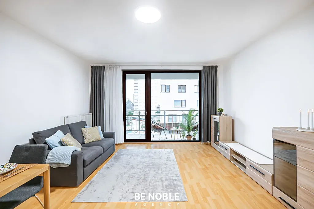 Dispozice bytu je velmi praktická a vzdušná. Obývací pokoj o velikosti 27,4 m² navazuje na rohovou, kompletně vybavenou kuchyňskou linku a nabízí dostatek prostoru jak pro jídelní část, tak pro odpočinkovou zónu. Z obývacího pokoje je přímý vstup na prostornou terasu, která je ideálním místem pro posezení, relax nebo pěstování zeleně.