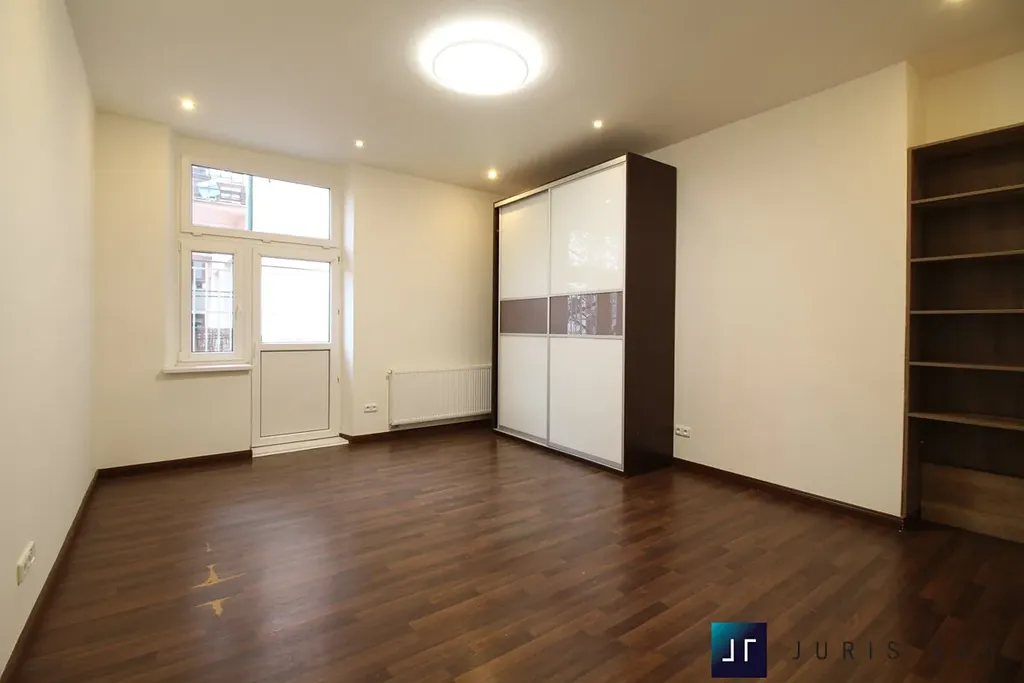Byt disponuje velkorysým obytným prostorem s kuchyňským koutem, třemi samostatnými pokoji, koupelnou, samostatným WC, šatnou, komorou a prostornou vstupní halou. Promyšlené dispoziční řešení poskytuje maximální komfort pro rodinné bydlení i atraktivní řešení pro náročné klienty hledající reprezentativní městský byt.