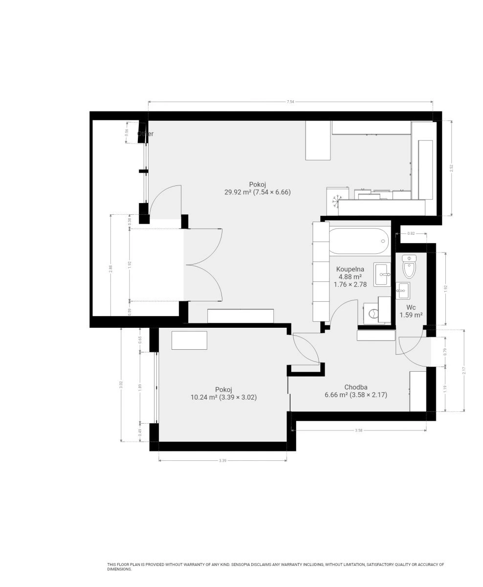 Koupelna je vybavena vanou a pračkou, toaleta je umístěna samostatně. Byt je ve velmi dobrém stavu a je vhodný pro jednotlivce nebo pár, kteří hledají moderní bydlení v klidném prostředí s dobrou dostupností do centra města.