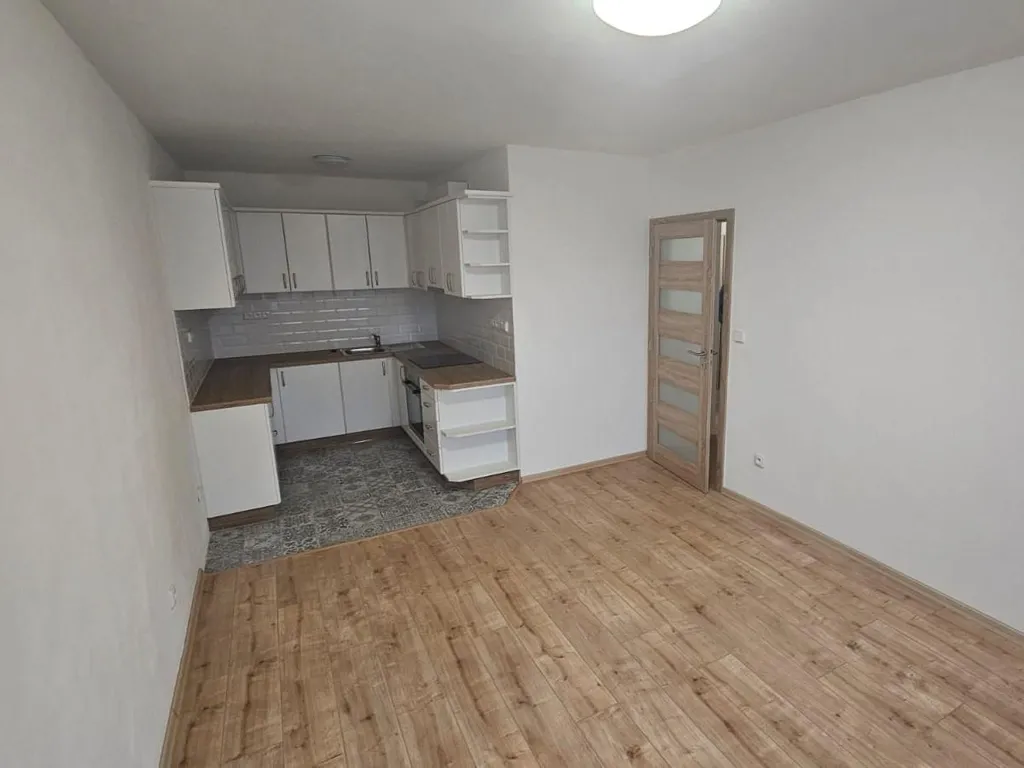 Interiér bytu je světlý a útulný. Na chodbě a v pokoji najdete hezké a prostorné vestavěné skříně. Obývací pokoj je propojený s kuchyní a působí svěžím dojmem. Kuchyňská linka je v perfektním stavu a má dostatek prostoru na uložení všech potřebných věcí. Kuchyně je vybavena troubou, mikrovlnkou a digestoří. V hezky situované koupelně najdete sprchový kout a prostor na pračku.