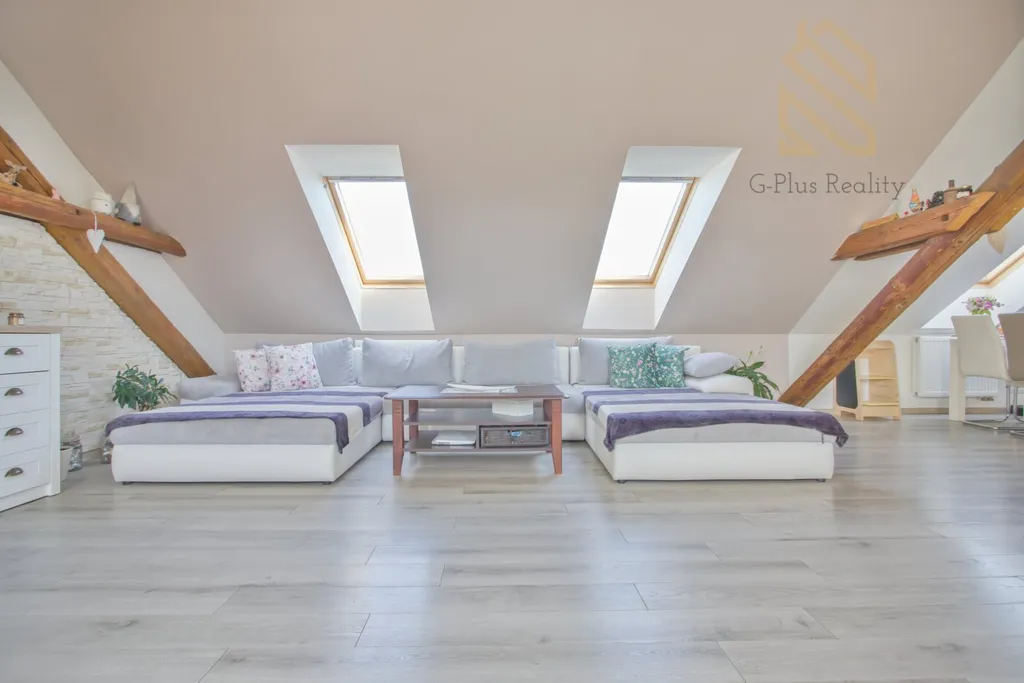 V přízemí domu se nachází bytová jednotka o dispozici 3+1. Ta zahrnuje vstupní chodbu, kuchyň, obývací pokoj, ložnici, koupelnu, technickou místnost s kotlem na tuhá paliva, dílnu a kancelář. V patře je umístěn prostorný a vkusně zrekonstruovaný byt 4+kk o ploše 120 m². Dispozice zahrnuje moderní kuchyň propojenou s obývacím pokojem, ložnici, dva dětské pokoje, šatnu a koupelnu s WC.