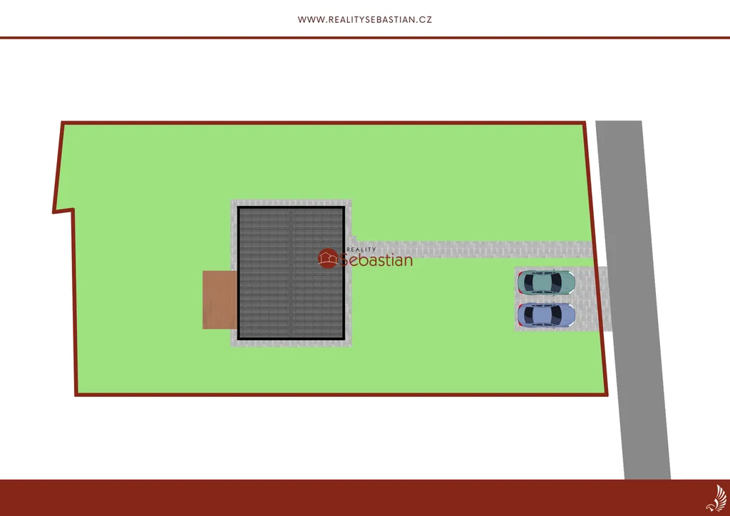 - oplocení se samostatnou brankou a posuvnou bránou (není součástí kupní ceny)