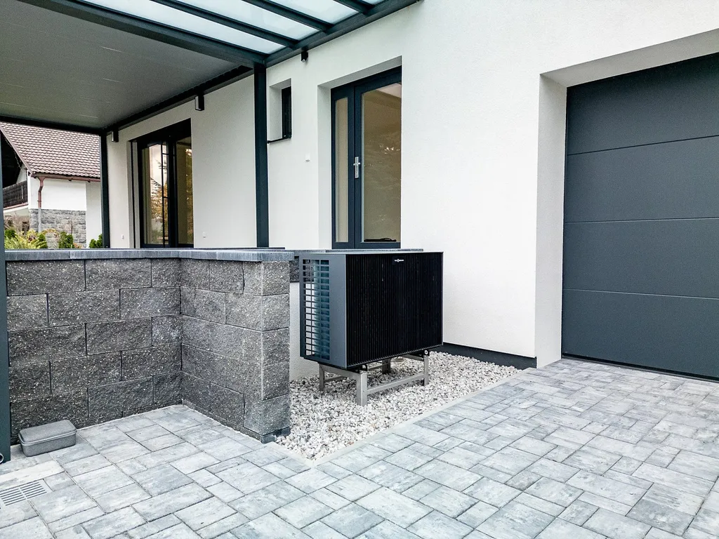 • tepelné čerpadlo + fotovoltaika s bateriovým uložištěm zajišťují ohřev vody 300 l