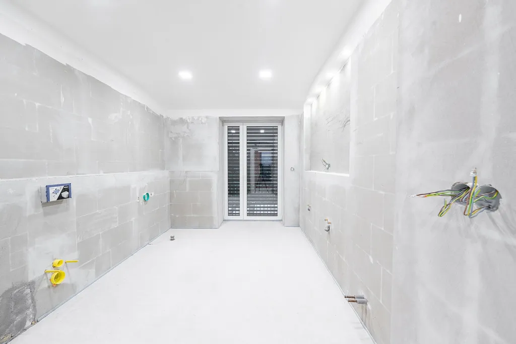 Dům je kompletně dokončený vč. oplocení a zpevněných ploch. Interiér necháváme na přání nového majitele — dokončení kuchyně, koupelen, podlahových krytin či dveří dle jeho představ. Návrh interiéru včetně cen máme připravený.