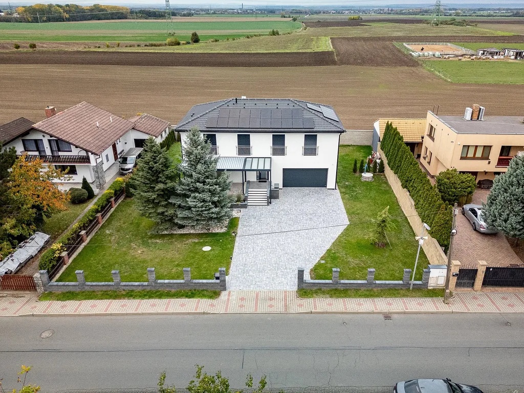 Na pozemku o velikosti 1038 m² stojí novostavba s užitnou plochou 232 m², zastavěnou plochou 165 m² a prostornou garáží 55 m² (strop 3,5 m).