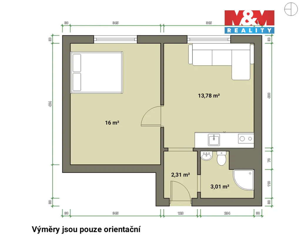 Byt je v osobním vlastnictví a má užitnou plochu 35 m². Dispozice zahrnuje samostatný pokoj, kuchyni, předsíň a koupelnu s toaletou. Byt je ve stavu dobrém, plně zařízený a připravený k okamžitému užívání nebo pronájmu bez nutnosti dalších investic.