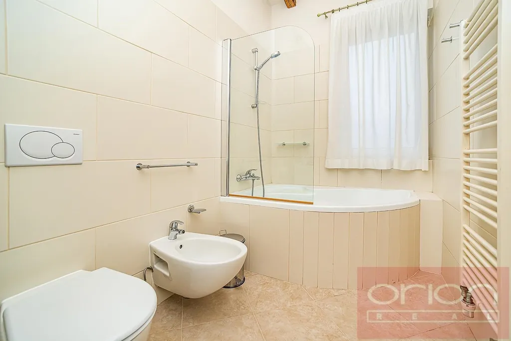 Nabízíme k pronájmu luxusní zařízený byt 1+kk s balkonem ve 4. patře neorenesančního domu Rezidence Italská z konce 19. století s udržovanou soukromou zahradou s vyhřívaným bazénem ve vyhledávané lokalitě Praha 2 - Vinohrady. Rezidenční dům je po kompletní rekonstrukci se zachováním všech architektonických prvků a je vybaven prémiovými a luxusními materiály. Nadstardantně zařízený byt o velikosti 38 m2 nabízí obývací pokoj orientovaný do vnitrobloku s výhledem na zahradu a bazén, plně vybaveným kuchyňským koutem vč. nádobí, koupelnu s vanou a s toaletou a balkon a velikosti 11 m2. Byt je vybaven italským nábytkem, ručně tkanými koberci, luxusními spotřebiči,, na podlahách jsou dřevěné parkety a dlažba. K vybavení bytu patří pračka se sušičkou, klimatizace, videotelefon, satelitní TV. Možnost zajistit pravidelný úklid bytu. V bytě jsou zachovány původní prvky. V rámci rezidence je také sauna, několikapatrové garáže, výtah, kamerový systém a ostraha. Součástí domu je vyhlášená italská cukrárna s produkty dovezenými přímo z Itálie. Možnost parkování v podzemní garáži za cenu od 200 Eur + DPH. Dům se nachází jen pár kroků od stanice metra Náměstí Míru, pár minut chůze na Václavské náměstí. V blízkosti je množství kaváren, vyhlášených restaurací, bister, lokálních obchodů, oblíbený park Riegrovy sady.