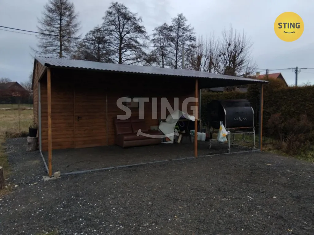 Součástí pozemku je dřevěný zahradní domek,ve kterém se dá zatopit za chladných večerů .
