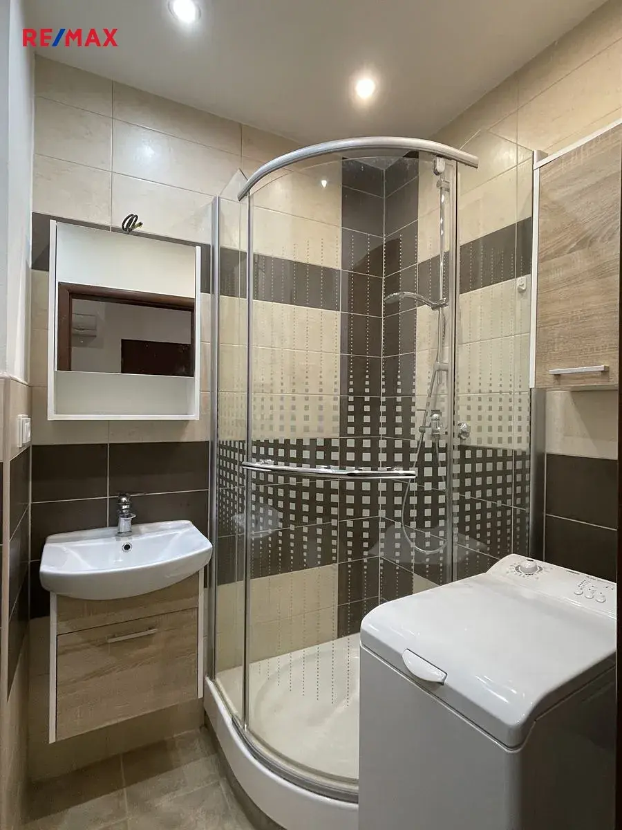Jedná se o hezký byt, který prošel rekonstrukcí (plastová okna, plovoucí podlaha, zděné jádro) a je vybavený kuchyňskou linkou, sporákem s troubou, lednicí, pračkou, pohovkou, konferenčním stolkem, obývací stěnou a skříní. Koupelna se sprchovým koutem a WC.