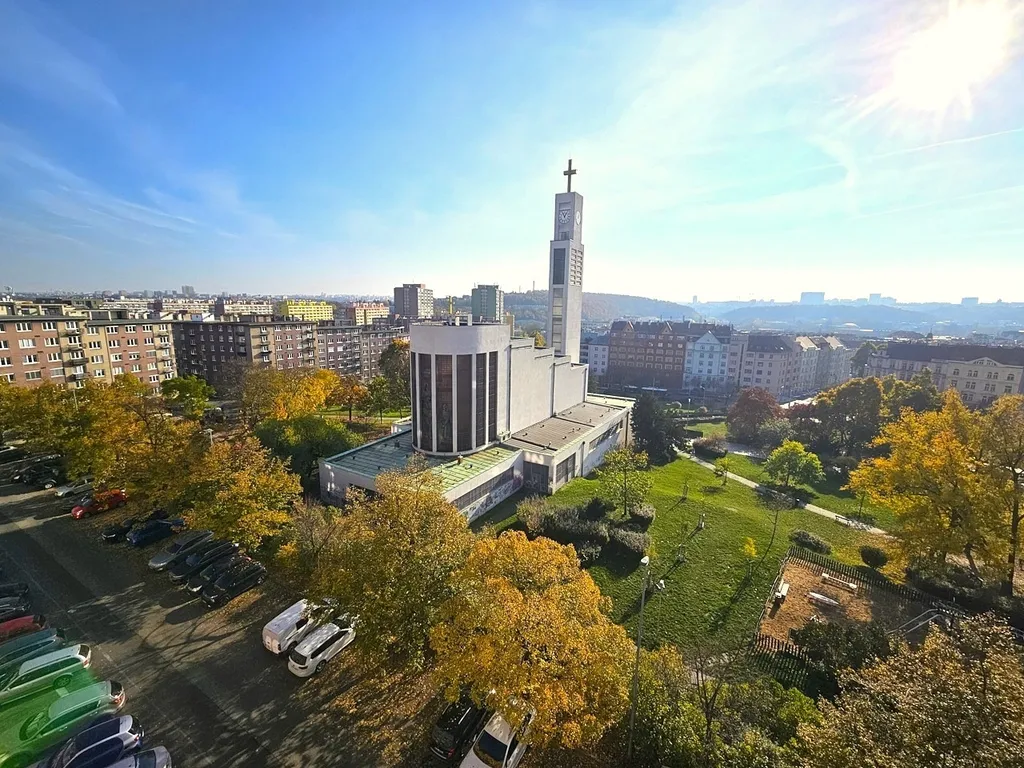 Pronájem bytu - velmi pěkný, slunný byt 55 m2 + balkón cca 3 m2, Praha 10 - Vršovice, ulice náměstí Svatopluka Čecha, 6.patro (poslední) v cihlovém domě s novým výtahem. Dům je velmi klidný a slušný, obývaný převážně samotnými majiteli bytů. Orientace bytu je na jih (obývací pokoj a balkón) s krásným výhledem do širého okolí a na sever (ložnice a kuchyně) do klidného zeleného vnitrobloku se vzrostlými stromy.