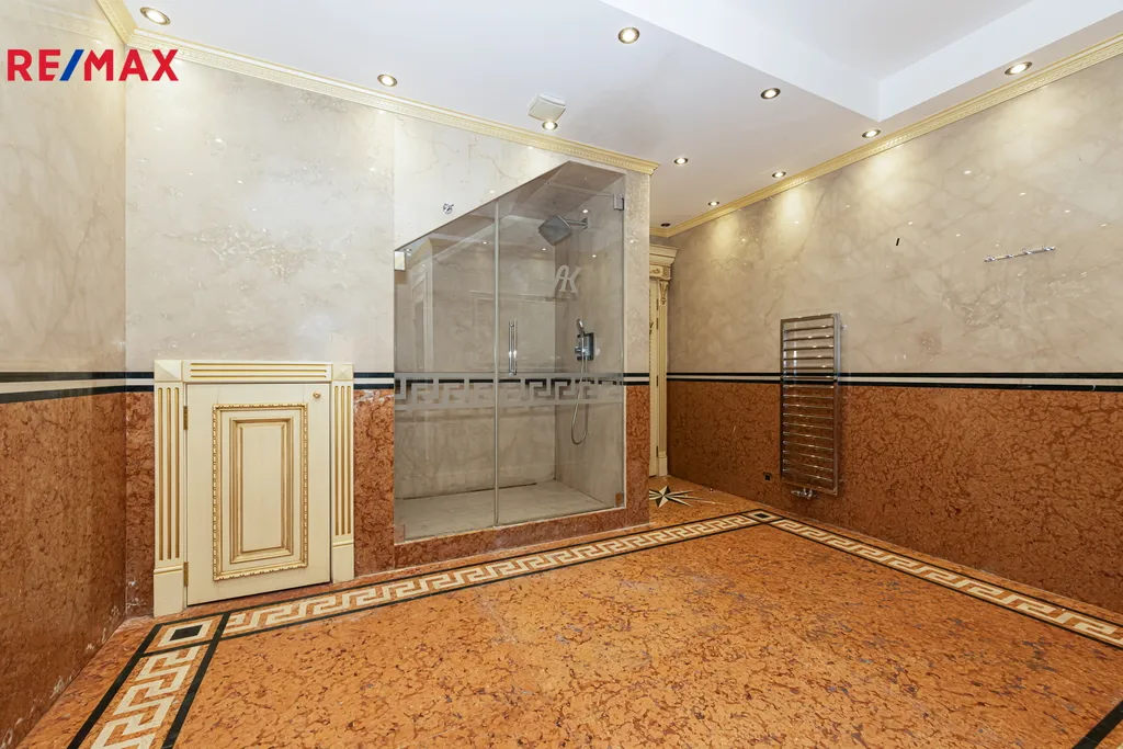 Dům disponuje velmi příjemným mikroklimatem díky podlahovému vytápění. V přízemí jsou podlahy z italského mramoru, interiér je vybaven kvalitním italským nábytkem a ručně vyráběnými dveřmi. V ložnicích jsou podlahy z masivního přírodního dřeva a luxusní povrchová úprava stěn z hedvábné tkaniny.