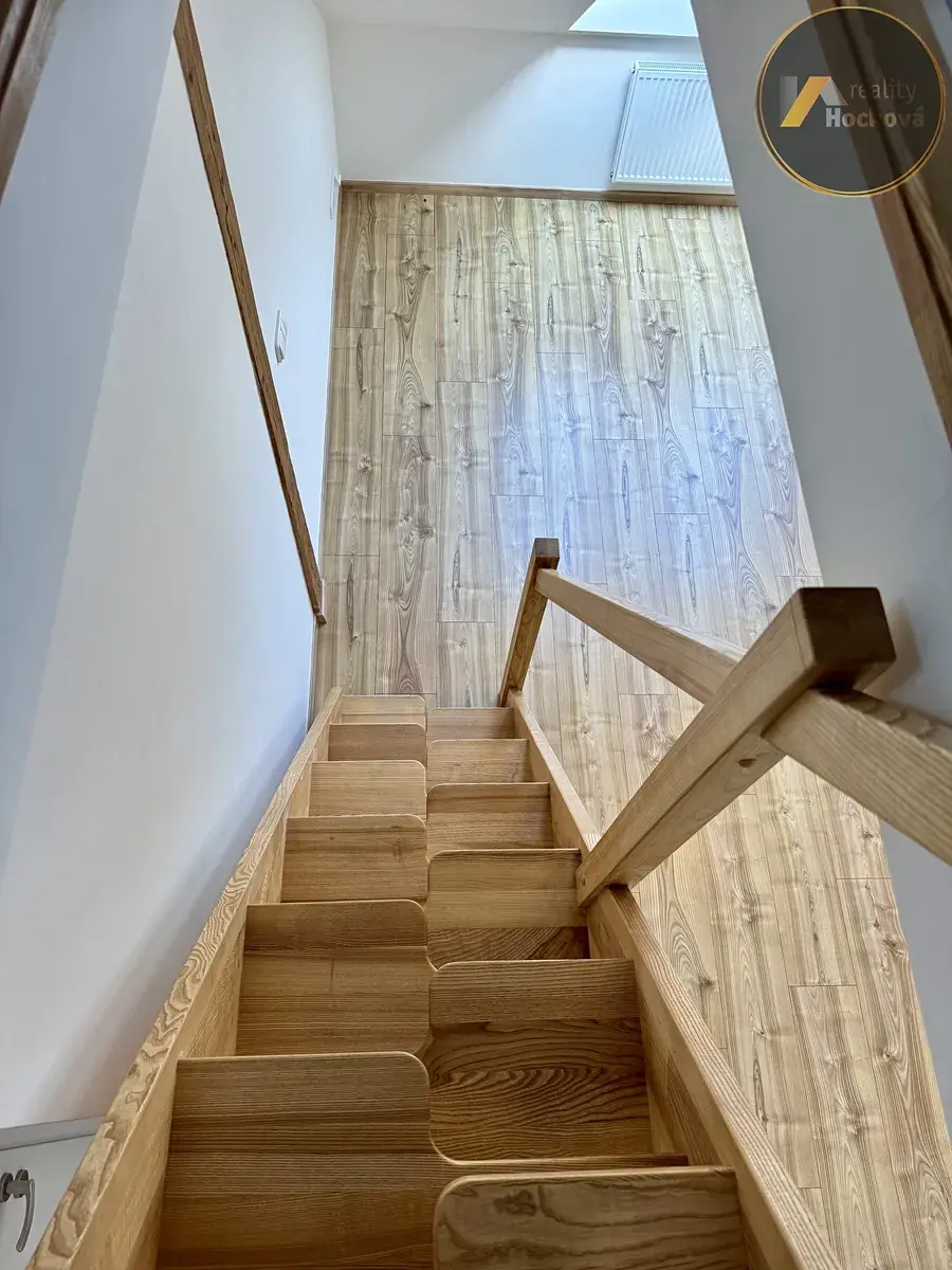 Horní podlaží (33,5 m²) – ateliér (nižší stropy).