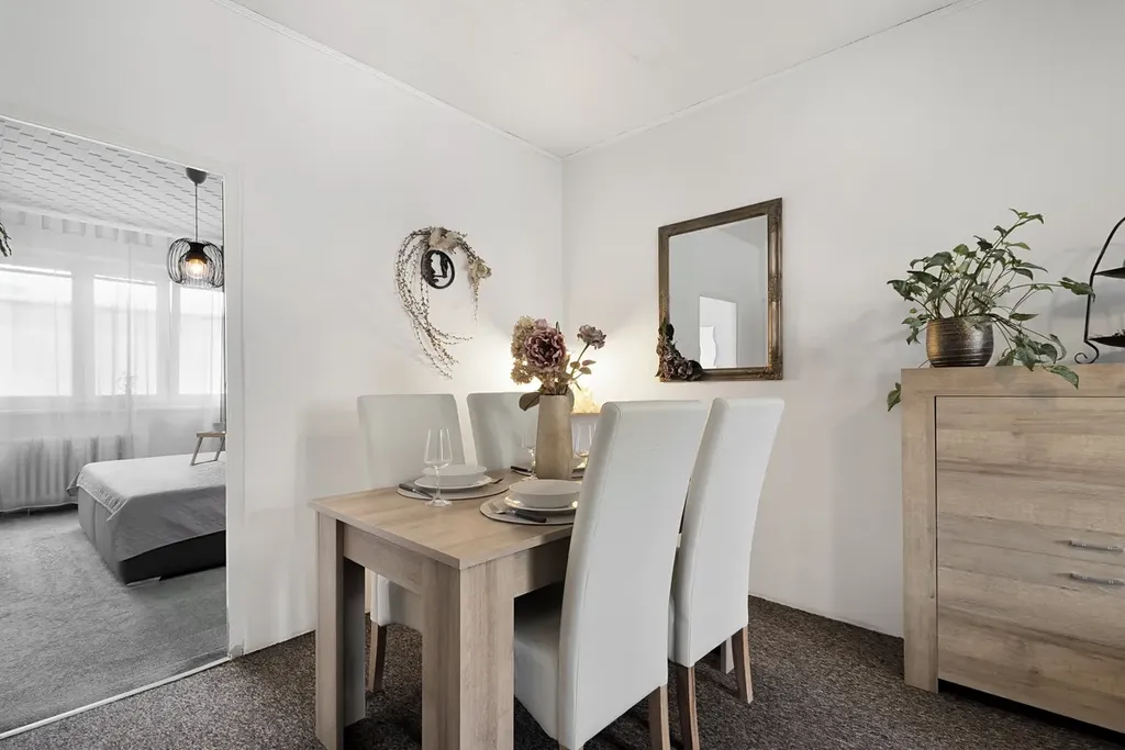 Byt je kompletně vybavený a vkusně zařízený, ve velmi zachovalém stavu, a je ihned k nastěhování. Součástí je sklepní kóje, přičemž společné sklepní prostory prošly nedávnou rekonstrukcí a jsou v perfektním stavu.