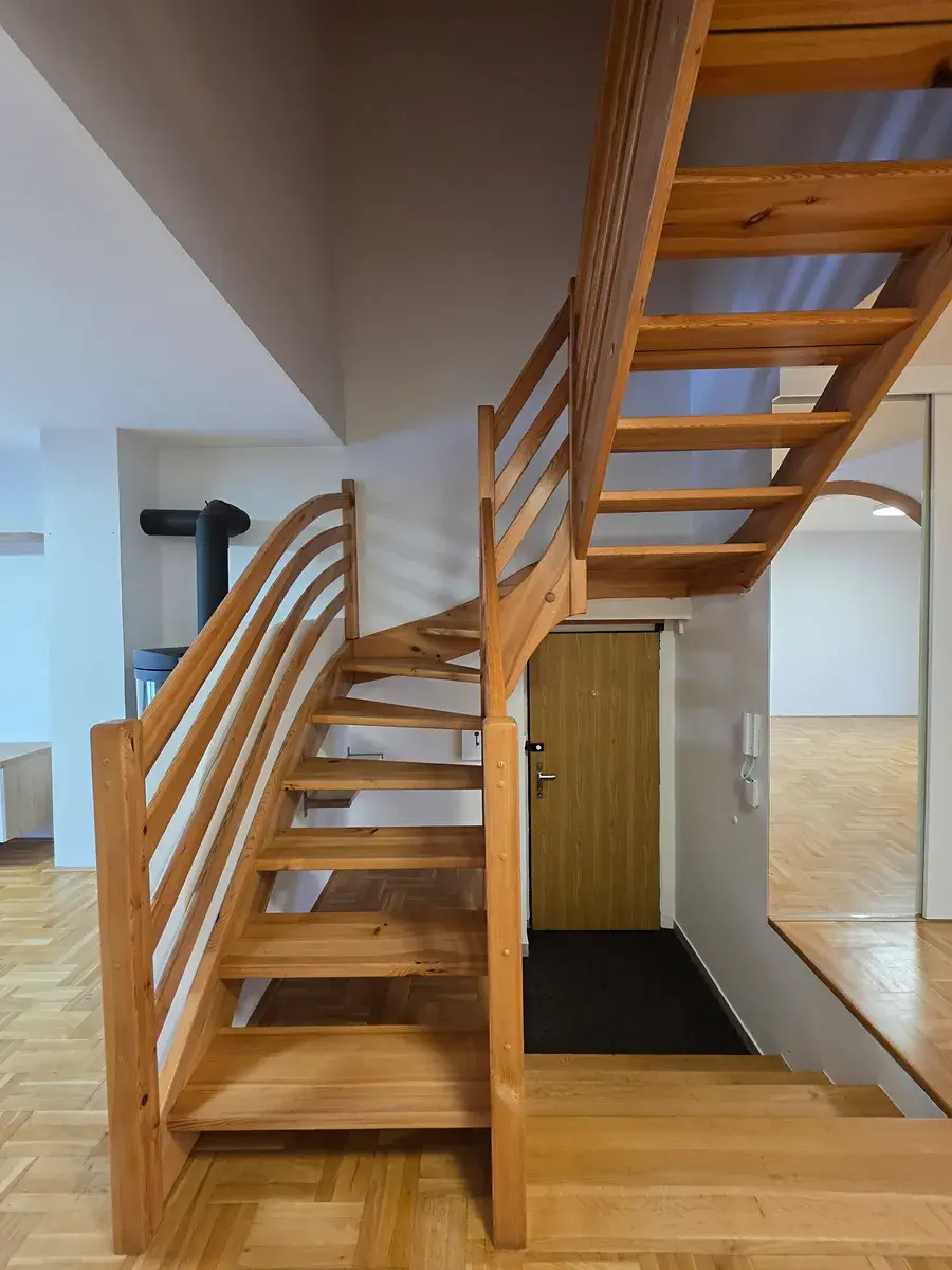 Tento prostorný mezonetový byt má skvělou dispozici, kdy jsou otevřeným dřevěným schodištěm propojena dvě podlaží,, kdy ve 3. NP je situována jídelna s kuchyňským koutem se zabudovanými elektrospotřebiči - elektrická trouba, myčka nádobí, elektrickou varnou deskou, ledničkou s mrazničkou, odsávačem par. Jídelna je propojena s balkónem. Jídelna navazuje na obývací pokoj, ve kterém je umístěna krbová kamna. V tomto NP se nachází samostatné WC, technická místnost vybavená pračkou a sušičkou a dále malá šatna, ve které je umístěn plynový kondenzační kotel, zajišťující jak vytápění celého bytu, tak ohřev teplé vody. Ve 4. NP se nachází velkorysá koupelna se sprchovým koutem a rohovou vanou, dětský pokoj a ložnice s šatnou a vstupem na horní lodžii s výhledem na Lysou horu.