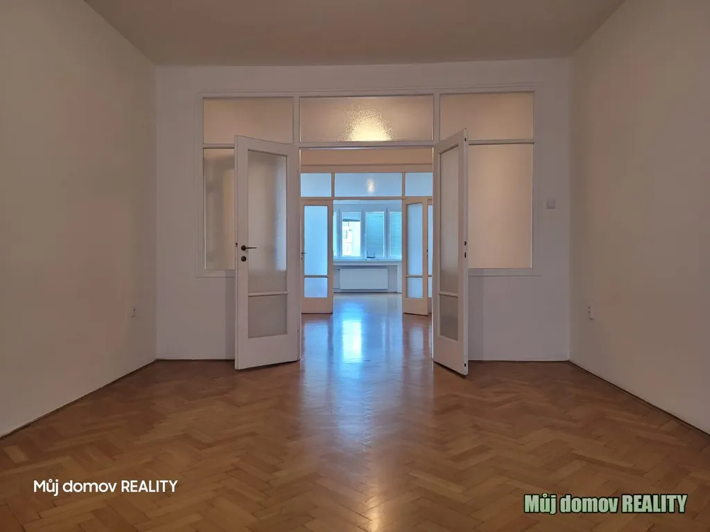 Nabízíme k pronájmu prostorný a světlý byt o velikosti 146 m2, který se nachází ve 2. patře činžovního domu s výtahem na adrese Stroupežnického, Praha 5 Smíchov.