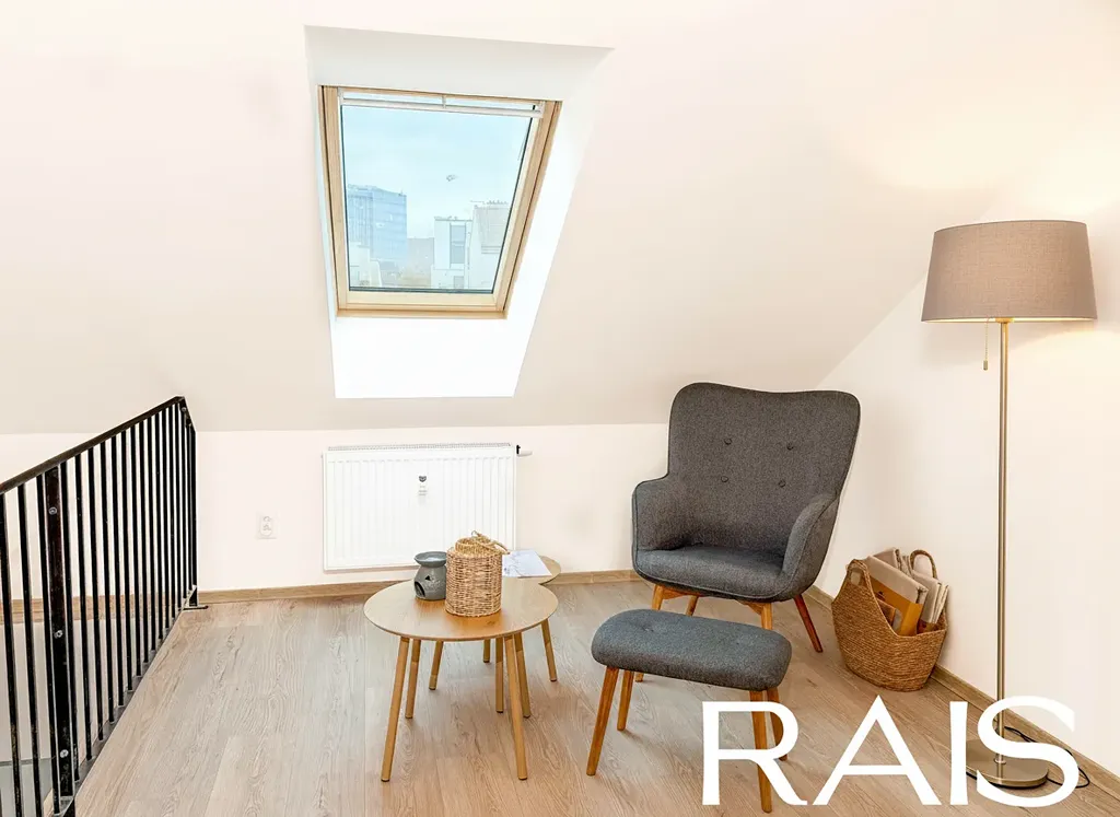 Bydlení, které bere centrum jako výhodu, ne jako kompromis. Mezonet 2+kk o přibližně 52 m² v osobním vlastnictví se nachází ve 3. a 4. patře rohového cihlového domu v historickém jádru Brna. Spodní úroveň tvoří světlý obytný prostor s připravenými přípojkami pro kuchyň, koupelna se sprchou a toaletou je osazena sanitou Grohe. V horním podkroví je klidová část s místem pro ložnici, pracovní kout nebo šatnu. Praktickým doplněním je příprava na klimatizaci a sklepní kóje přibližně 3 m². Energetická náročnost budovy spadá do tříd C a D, orientační měsíční náklady jsou zhruba 3 700 Kč + elektřina.