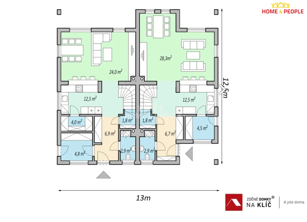 Projekt dvojdomu TWIX poskytuje ekonomicky výhodnou alternativu luxusního bydlení za výbornou cenu. Dům představuje kombinaci pěkných tvarů a racionální půdorysné dispozice.