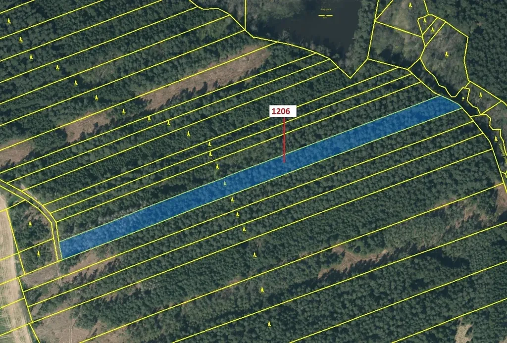 Lesní pozemek o výměře 10 189 m2, parcelní číslo 1206, podíl 1/1, katastrální území Chrbonín, obec Chrbonín, obec s rozšířenou působností Tábor, okres Tábor, Jihočeský kraj. Částečně po těžbě.