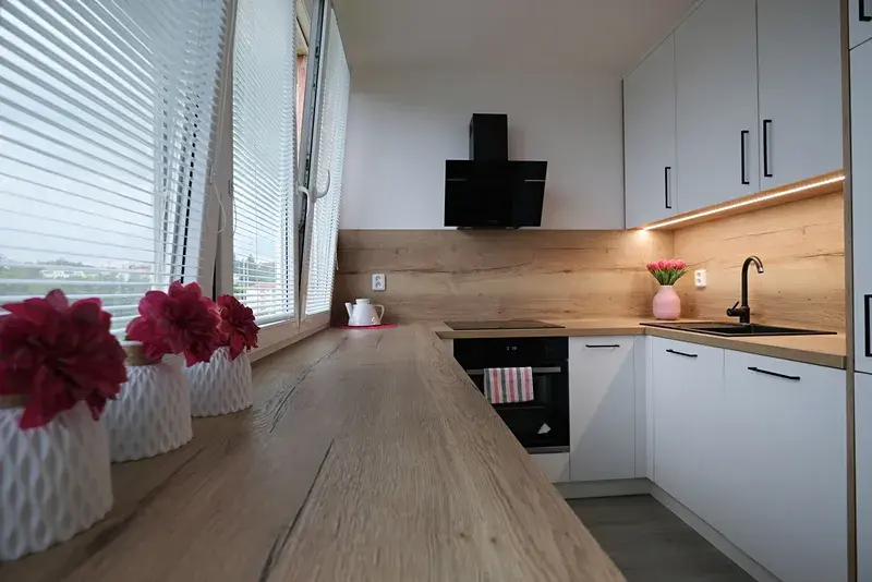 Nabízíme dlouhodobý pronájem hezkého, slunného bytu o velikosti 1+1 po celkové, velmi zdařilé rekonstrukci. Byt se nachází v 8.NP zděného domu v Uherském Brodě - sídliště 1. máje. Dispozičně se jedná o vstupní chodbu, kuchyň s novou kuchyňskou linkou na míru a s vestavěnými spotřebiči (indukční deska, horkovzdušná trouba, digestoř, myčka, pračka, lednice s mrazákem) Dále pokoj se šatnou s vestavěnou skříní. Koupelna se sprchovým koutem a toaletou. K bytu náleží sklep. Jedná se o klidné bydlení v dosahu je obchod, mateřská a základní škola, dětské hřiště, kino, zastávka MHD. Nájem:11.000,-Kč/měsíčně + energie 3.000,-Kč/měsíčně. Byt je k dispozici od 2/2026