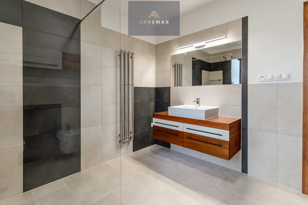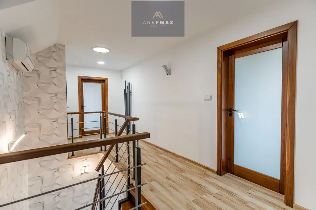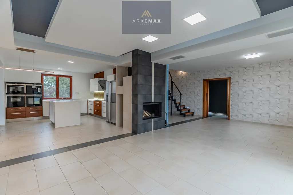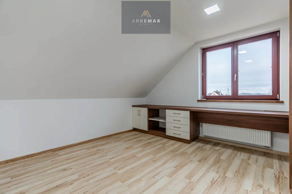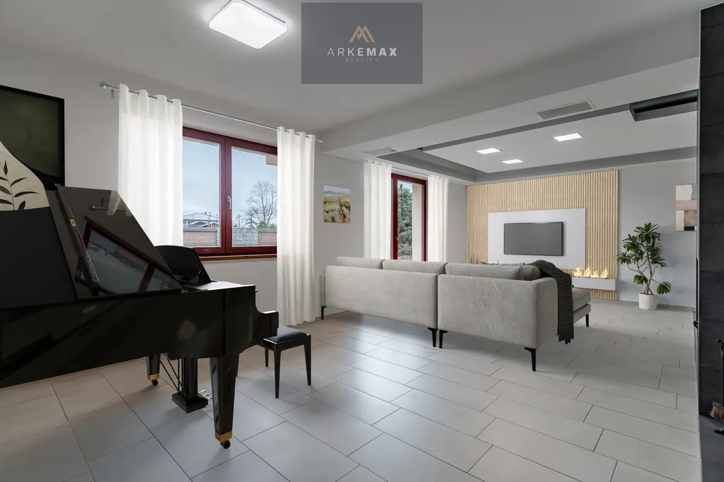 Dům nabízí velkorysou užitnou plochu 295 m², která uspokojí i náročné zájemce. V přízemí se nachází prostorný obývací pokoj propojený s kuchyní a jídelnou, koupelna s toaletou, technická místnost a vstupní chodba. V patře tři samostatné ložnice, pracovna o rozměru 6 × 6 m (ideální pro home office, ateliér nebo hernu), koupelna, toaleta, garáž a terasa (5 × 3 m).