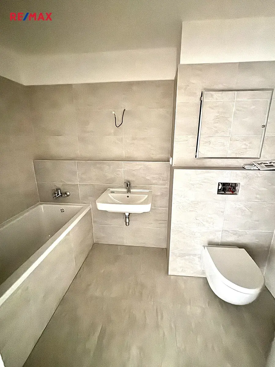 Nadstandardně veliký byt se skládá z obývacího pokoje s kuchyňským koutem (30 m2) a ložnice (17m2), oplocená předzahrádka s teráskou. Byt bude díky orientaci na západ světlý po celý den. Koupelna s vanou a toaletou.