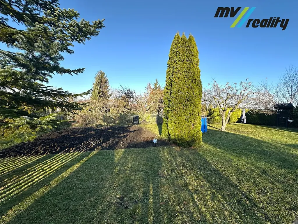 Pozemek je oplocený, rovinatý s nadzemním bazénem.
