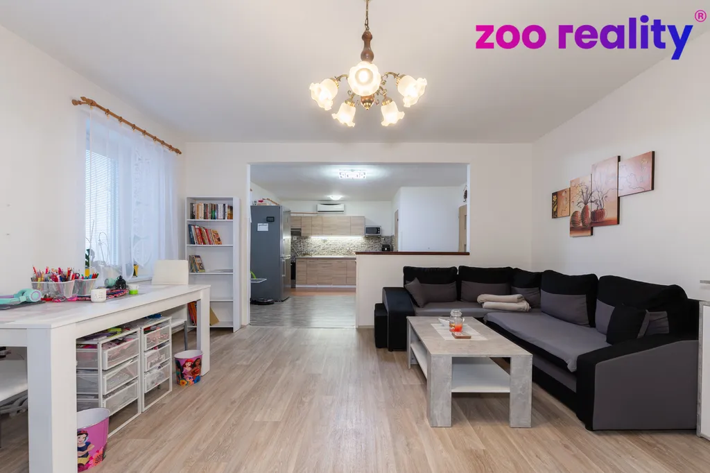 Bytová jednotka o dispozici 4+kk. Po vstupu do patra je dům velmi chytře rozdělen – vlevo se nachází pokoje, vpravo prostorný obývací pokoj propojený s kuchyní. Toto uspořádání zajišťuje klid a soukromí pro všechny členy domácnosti. V patře je dále hlavní koupelna a samostatná toaleta.