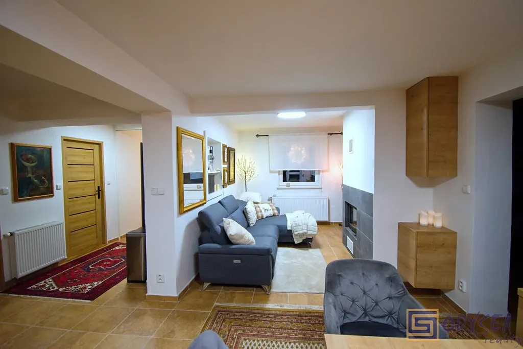 Interiér domu má zajímavé dispoziční řešení, srdcem domu je obývací pokoj s moderním kuchyňským koutem, ze kterého se vchází do ostatních pokojů a koupelny. Dům je obklopen okrasnou zahradou, která poskytuje dostatek soukromí. V letních měsících je možné nerušeně relaxovat ve stylovém zahradním altánu, k dispozici je nadzemní bazén a útulná zahradní chatka. Naproti domu stojí hospodářská budova, jejíž součástí je garáž. Dům a zahrada všestranně zajišťují potřeby současného moderního bydlení. Za výhodu lze považovat i skutečnost, že zadní část pozemku může být do budoucna využita k další výstavbě. Nejbližší autobusová zastávka je cca 300 m, centrum obce cca 1,5 km. Pokud Vás tato nemovitost zaujala, rádi Vás přivítáme na nezávazné prohlídce.