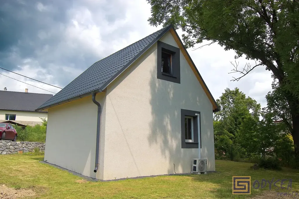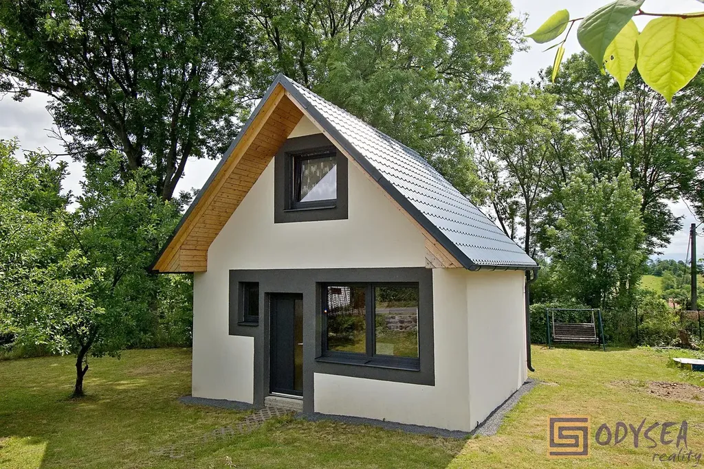 Exklusivně nabízíme k prodeji dům v klidné části obce Bílov, s pozemkem 413 m2. Dům o zastavěné ploše 34 m2 má dispozici 2+kk, v přízemí je obývací pokoj s kuchyňským koutem, ložnice a koupelna s toaletou, v prvním patře se nachází jedna podkrovní místnost. Jedná se montovanou sendvičovou dřevostavbu, která je zateplená polystyrenem 20 cm, sedlová střecha je pokrytá plechovou střešní krytinou. Vytápění zajišťuje klimatizační jednotka, ohřev teplé vody elektrický bojler, odpady jsou svedeny do obecní kanalizace. K domu náleží zahrada osázená ovocnými stromy, součástí jsou dvě parkovací stání pro automobily. V obci je mateřská škola, COOP, nové sportovní centrum, kde je k dispozici víceúčelová sportovní hala, tenisový kurt, dětské hřiště, bowling, fotbalové hřiště. Bílov se nachází nedaleko Bílovce, po dálnici pouhých 25 min. od centra Ostravy. Pokud Vás tato nabídka zaujala, rádi Vás přivítáme na nezávazné prohlídce.
