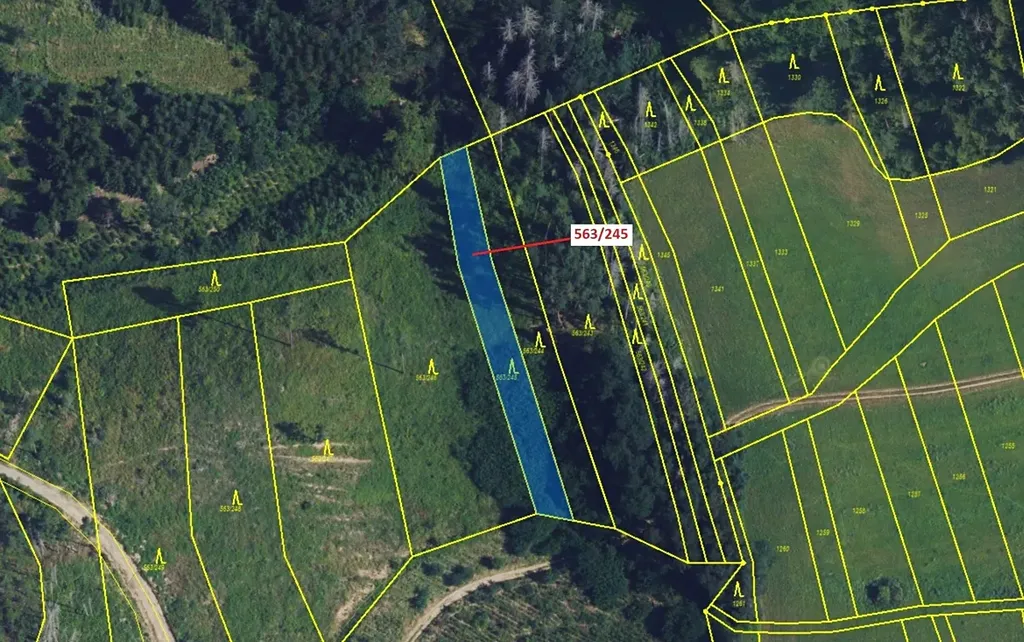 Lesní pozemek o výměře 1009 m2, parcelní číslo 563/245, podíl 1/1, katastrální území Spešov, obec Spešov, obec s rozšířenou působností Blansko, okres Blansko, Jihomoravský kraj.