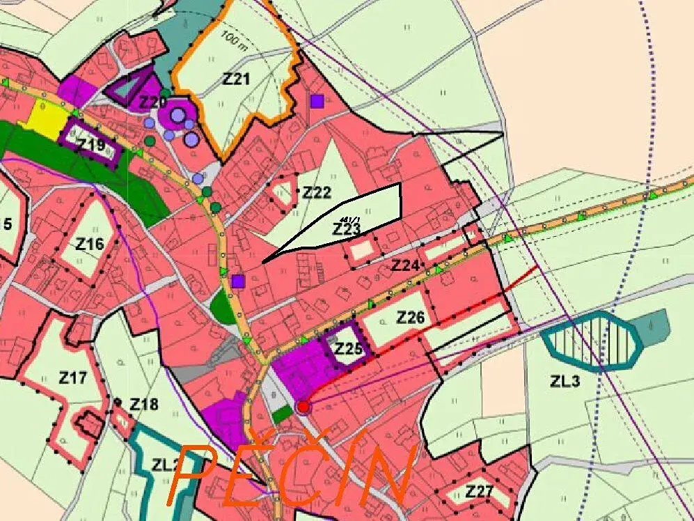 Předmětem dražby je pozemek o výměře 5 224 m2 v obci Pěčín. Pozemek se nachází v centru obce,