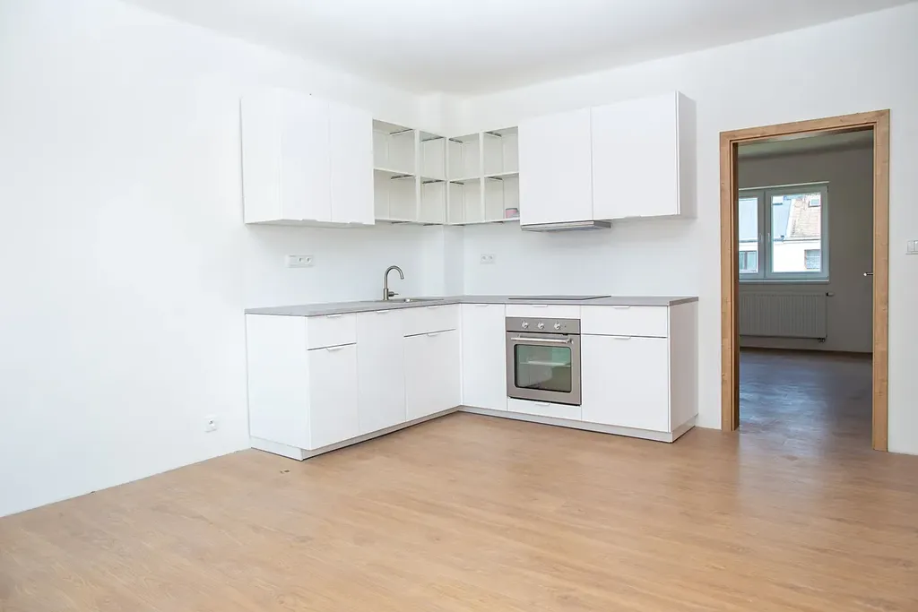 Byt se pronajímá bez vybavení. V bytě je pouze kuchyňská linka. Ideální bydlení pro páry, pro nekuřáky, bez domácích mazlíčků.