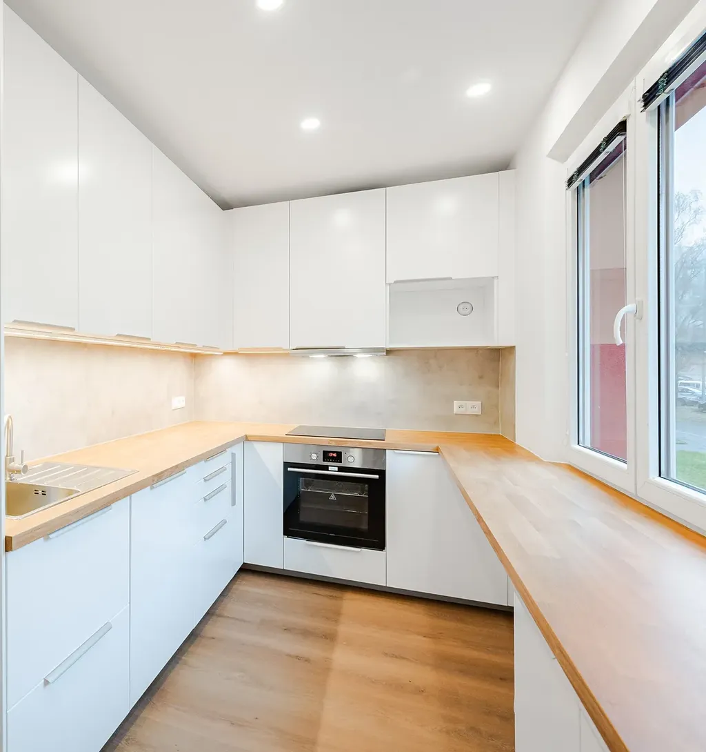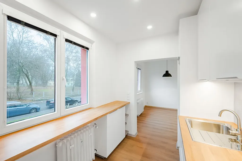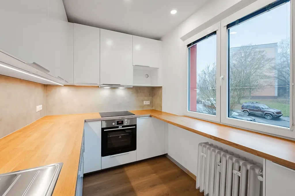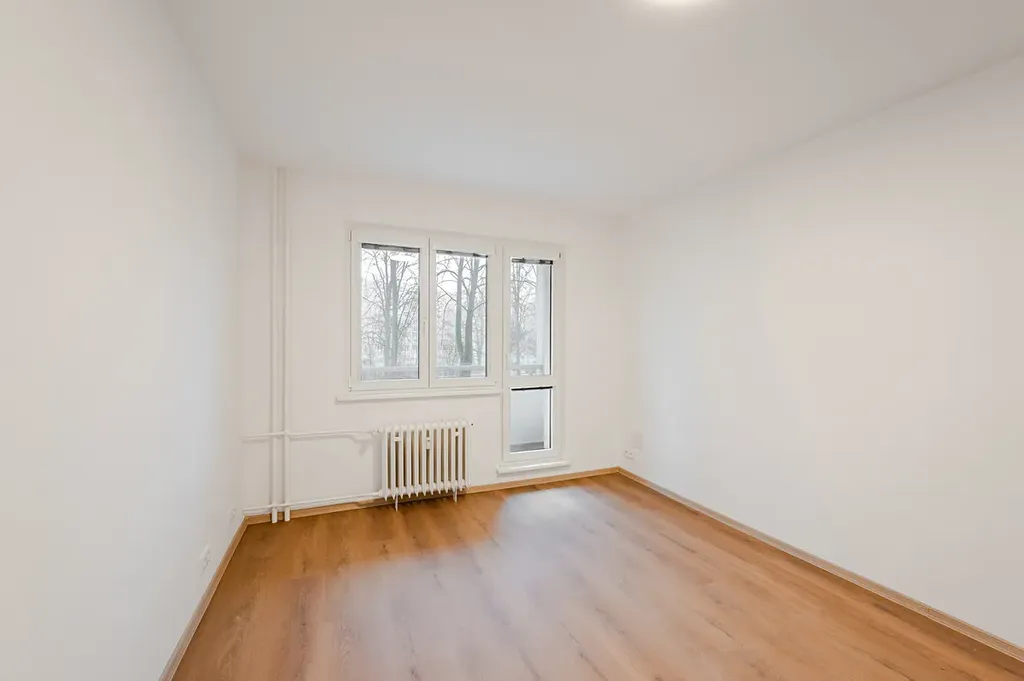 Byt je po právě dokončené rekonstrukci a bude tak prvním nájemníkem "v novém". Panelový dům je také po rekonstrukci s výhledy do zeleně.
