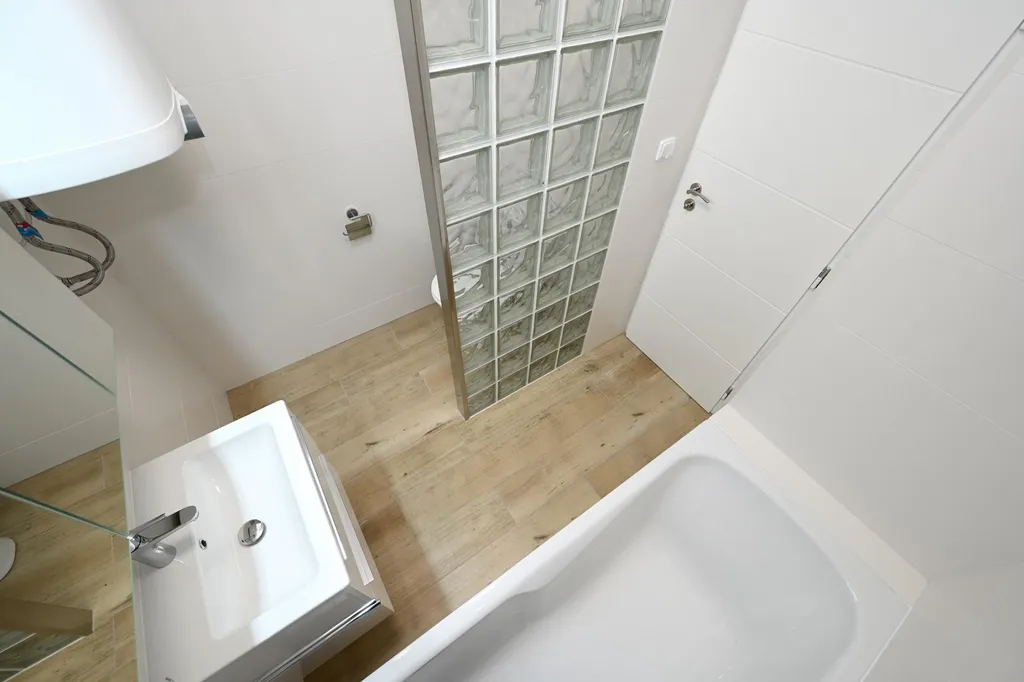 Zcela nová rekonstrukce bytu 5. NP v klidné ulici kousek od parku Petřín. Okna východním směrem, opatřena vnějšími elektrickými roletami.