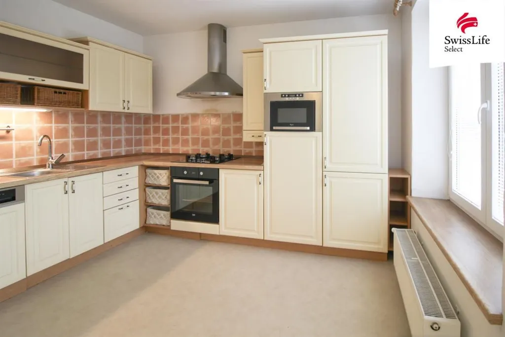 V kuchyni jsou k dispozici vestavné spotřebiče - pečící trouba, myčka nádobí, plynový sporák, digestoř a mikrovlnná trouba.