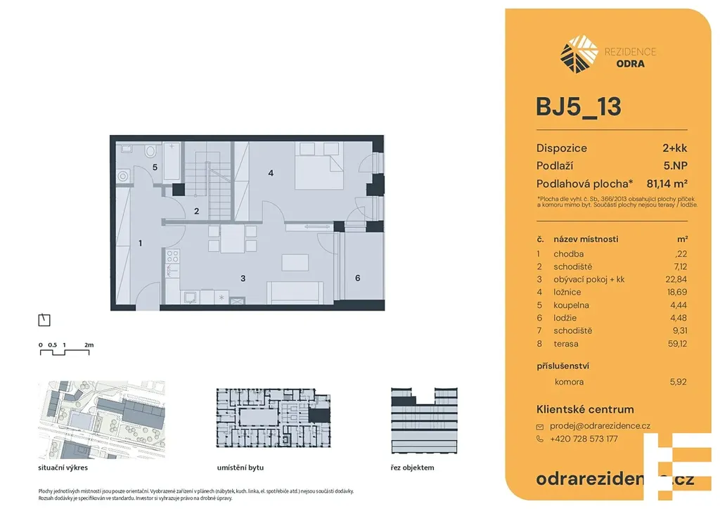 Hledáte nový domov v klidné a přitom skvěle dostupné lokalitě? Rezidence Odra je moderní projekt s duší i budoucností, který vzniká na místě bývalého obchodního centra v pražských Bohnicích. Nyní vám nabízíme konkrétní volnou jednotku 2+kk o ploše 81,14  m², nacházející se v 5. nadzemním podlaží budovy ve fázi dokončení.