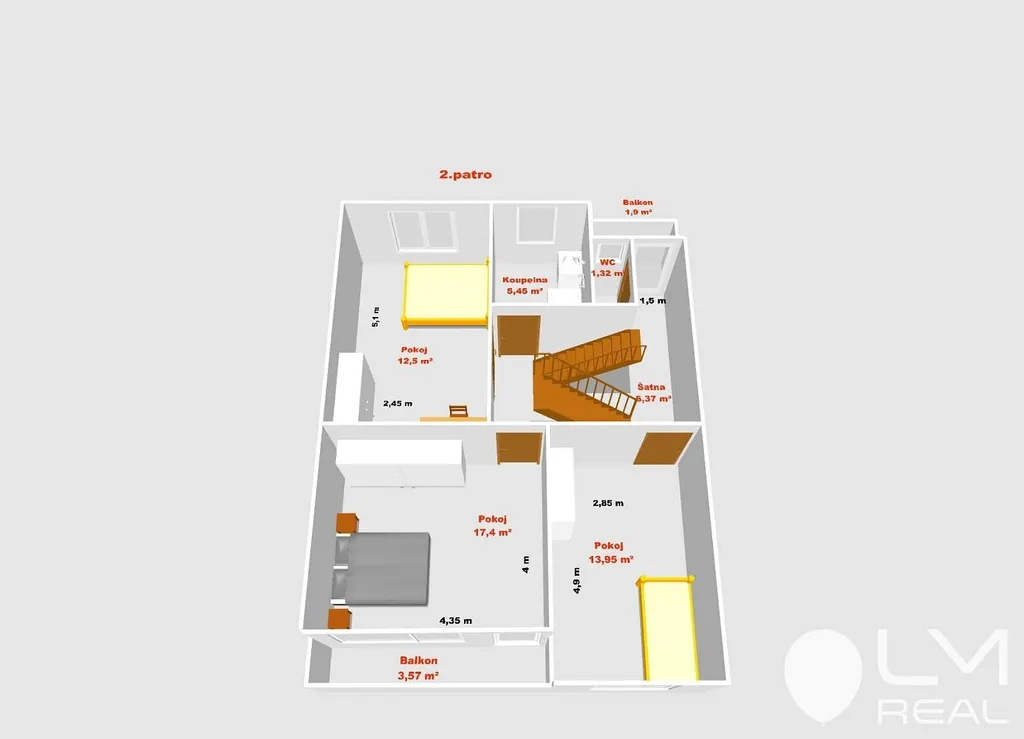 2. NP kuchyně se spíží a jídelním koutem, obývací pokoj, dvě ložnice, balkon,