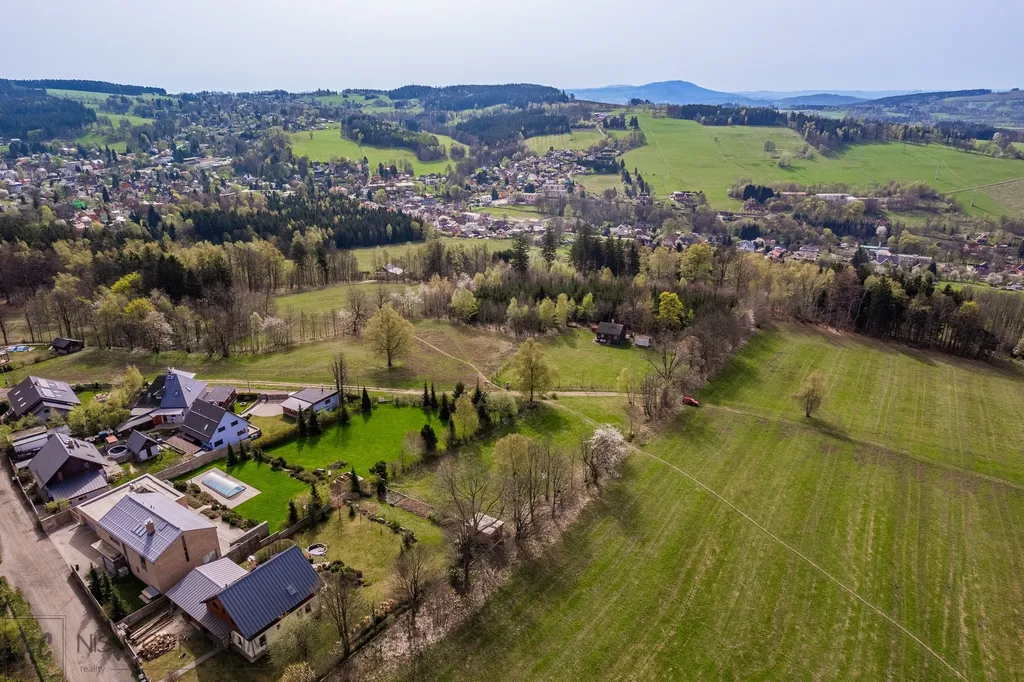 V sousedství této stavební parcely jsou jen již louky a otevřená krajina bez možnosti budoucí zástavby. Z tohoto jižně orientovaného pozemku na vrcholu kopce Vrkoslavice je krásný výhled na protější Ještědsko - kozákovský hřeben i na vrcholky kopců v Českém ráji.