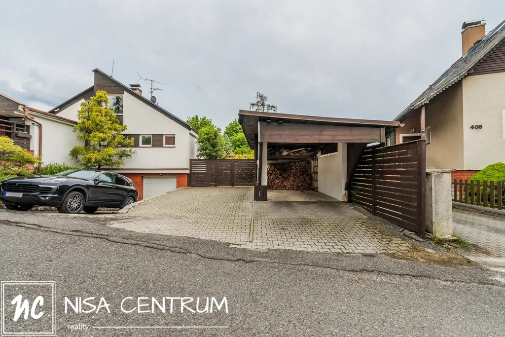 U domu je dostatek parkovacích míst pro několik aut, ať už v garáží, pod přístřeškem či na zpevněné ploše vedle. Přístřešek na auto slouží zároveň jako dřevník.