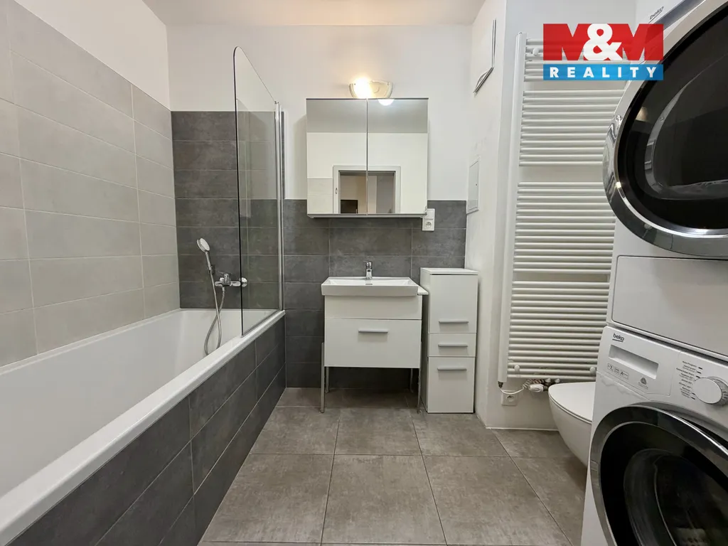 Byt se skládá z prostorného obývacího pokoje s velkými okny a se vstupem na terasu a zahradu, součástí obývacího pokoje je také kuchyňská linka zn. Oresi s varnou deskou, vestavnou mikrovlnou troubou, vestavnou pečící troubou, digestoří, myčkou a lednicí, dále ložnice s venkovní žaluzií, koupelna a WC s pračkou a sušičkou. Byt je plně vybaven.
