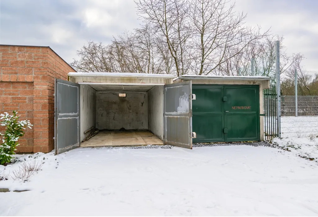 Garáž může sloužit pro parkování auta nebo jako skladovací prostor, zároveň je před vjezdem dostatek místa i další parkovací stání. Zastavěná plocha garáže je 21 m². Garáž je vyklizená a připravena k okamžitému využití.