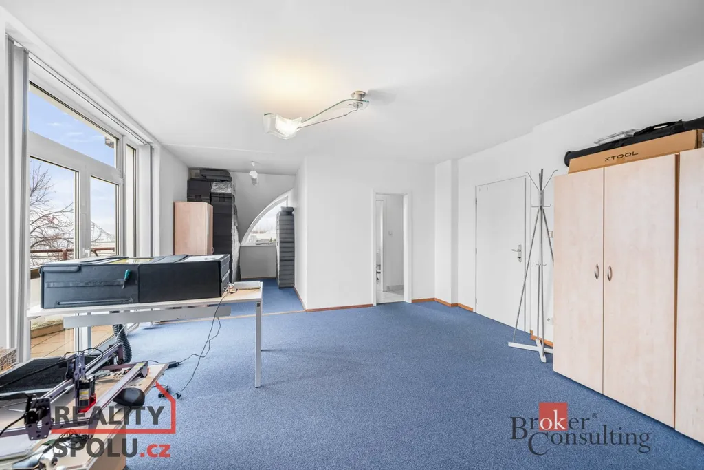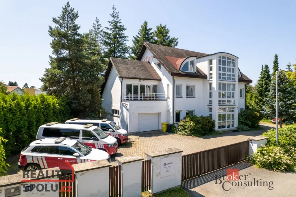 Nabízíme k pronájmu administrativní objekt s vlastním pozemkem v obci Průhonice. Jedná se o třípatrovou budovu o celkové výměře 447 m², včetně parkovacích míst za branou pro minimálně 12 aut. Aktuálně je budova rozčleněna na 9 oddělených místností, což poskytuje široké možnosti přizpůsobení dispozic pro rodinné bydlení. Přízemí nabízí vstupní halu, kancelář, zasedací místnost a garáž, která by mohla sloužit jako sklad nebo parkovací prostor. První patro obsahuje pět místností vhodných pro ložnice nebo pracovny, druhé patro pak disponuje dvěma místnostmi a velkým prostorem, ideálním pro společenské aktivity. Nový plynový kotel Viessmann zajišťuje efektivní vytápění a ohřev TUV. Na pozemek je vjezd automatickými vraty a vše je zabezpečeno EZS. Okolní zeleň zajišťuje příjemné prostředí pro relaxaci. Díky výborné dostupnosti Prahy a dálnice D1 je tento objekt ideální pro rodinné bydlení.