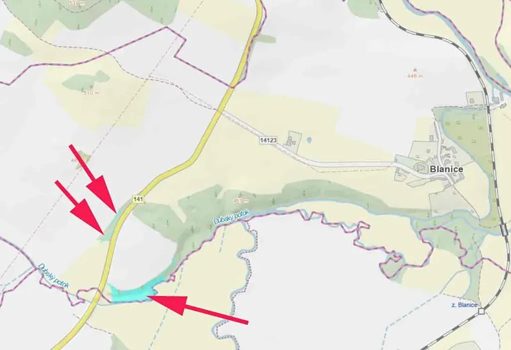 Prodáme pozemek, louku s porostem stromů v k.ú. Blanice, po okraji protéká Dubský potok, parc.č. 135 a 136. Přímo přístupný z hlavní silnice. K tomu ještě dva menší pozemky také u hlavní silnice (ideální pro umístění reklamy), parc.č. 101 a 139/2.