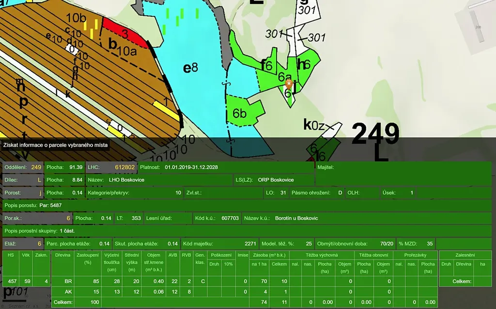 Prodáme pozemek, les v k.ú. Borotín u Boskovic, parc.č. 5487, stáří 62 let, složení 85% borovice, 15% akát