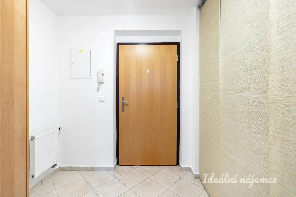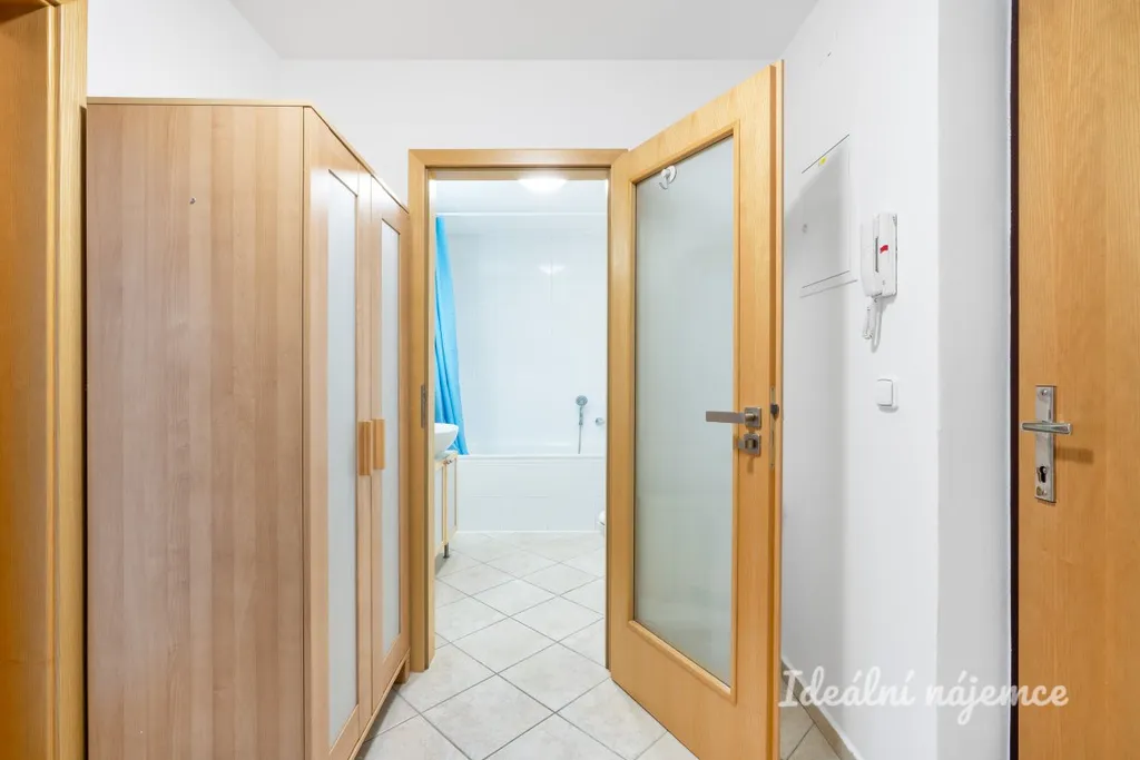 Byt se nabízí plně vybavený. Kuchyňský kout disponuje lednicí s mrazákem, myčkou, elektrickou troubou, varnou deskou a digestoří. Obývací část je zařízena jídelním stolem s židlemi, křeslem, postelí s matrací, lampou a knihovnou. V koupelně je vana, zrcadlo, umyvadlo, koupelnová skříňka, pračka a WC. V předsíni najdeme skříň a úložné prostory. Velkou výhodou bytu je praktická šatna.