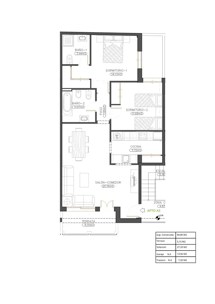 Projekt zahrnuje 13 dobře navržených domů se 2 ložnicemi a 2 koupelnami, z nichž jedna je en suite. Zájemci si mohou vybrat mezi přízemními domy se soukromým patiem nebo byty v horním patře s terasou. Vezměte prosím na vědomí, že budova nemá výtah, což nabízí tradičnější styl bydlení v nízkopodlažním domě.