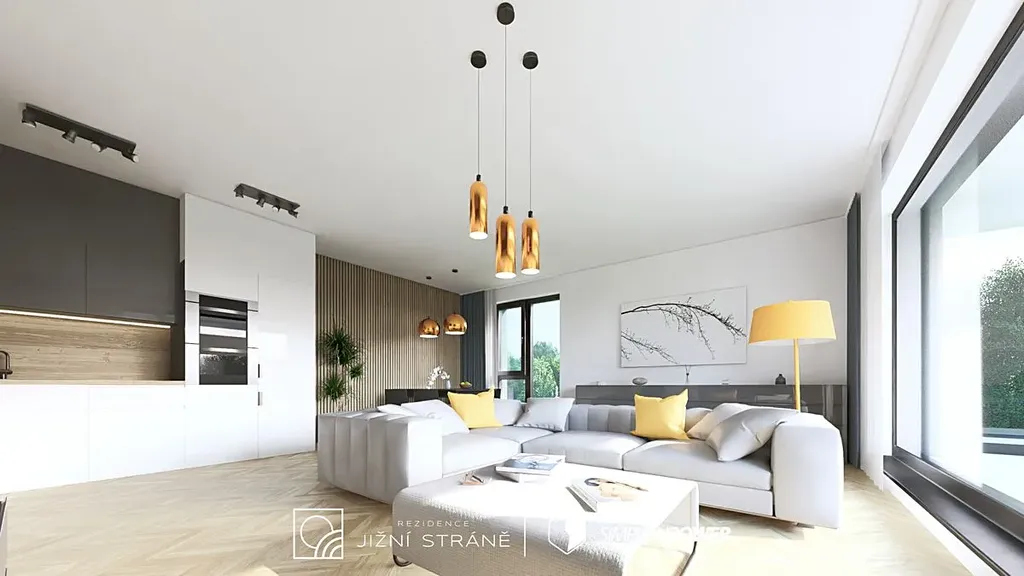 Cena bytové jednotky zahrnuje vysoký volitelný standard (kvalitní vinylové podlahy, zařizovací prvky koupelen Villeroy & Boch, Grohe, velkoformátové obklady a dlažba, plné laminátové CPL dveře a další).