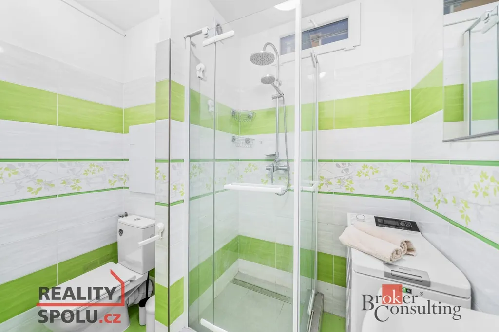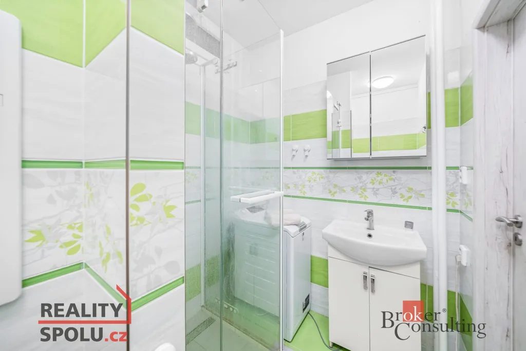 Kuchyň je vybavena moderní kuchyňskou linkou se spotřebiči, koupelna se sprchovým koutem a WC je řešena funkčně a vkusně. Byt působí světlým a vzdušným dojmem.