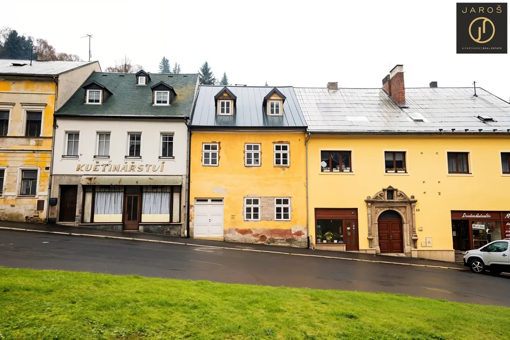 Nabízíme k prodeji řadový dům určený k celkové rekonstrukci na náměstí Republiky v historické části Jáchymova. Součástí prodeje je pasport stavby a projekt na přestavbu objektu na čtyři samostatné bytové jednotky s možností vybudování malého wellness ve dvorním traktu. Dům má novou plechovou střešní krytinu, okna jsou již vyměněná za nová a konstrukce krovu je hambálková, vhodná pro plánované využití podkroví.